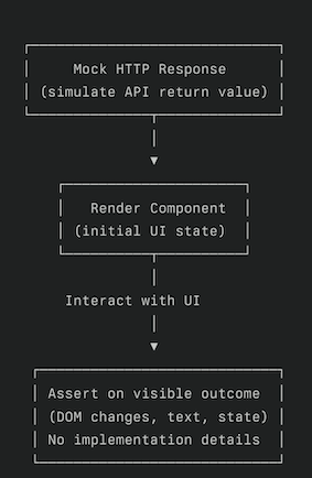 Component integration tests validate the behavior of individual frontend use cases using a black-box testing strategy. The goal is to detect bugs as early and as quickly as possible by avoiding testing implementation details, since the SUT (System Under Test) will likely be refactored.
